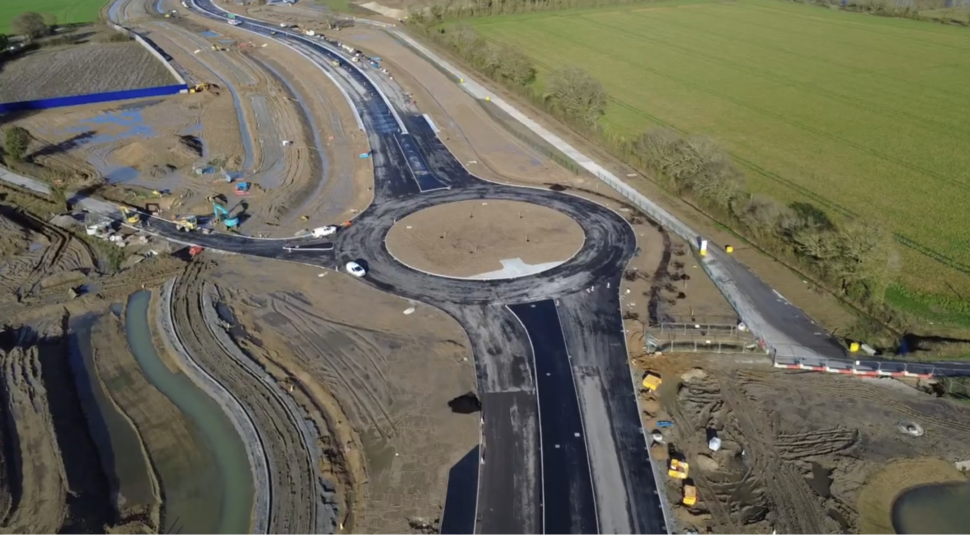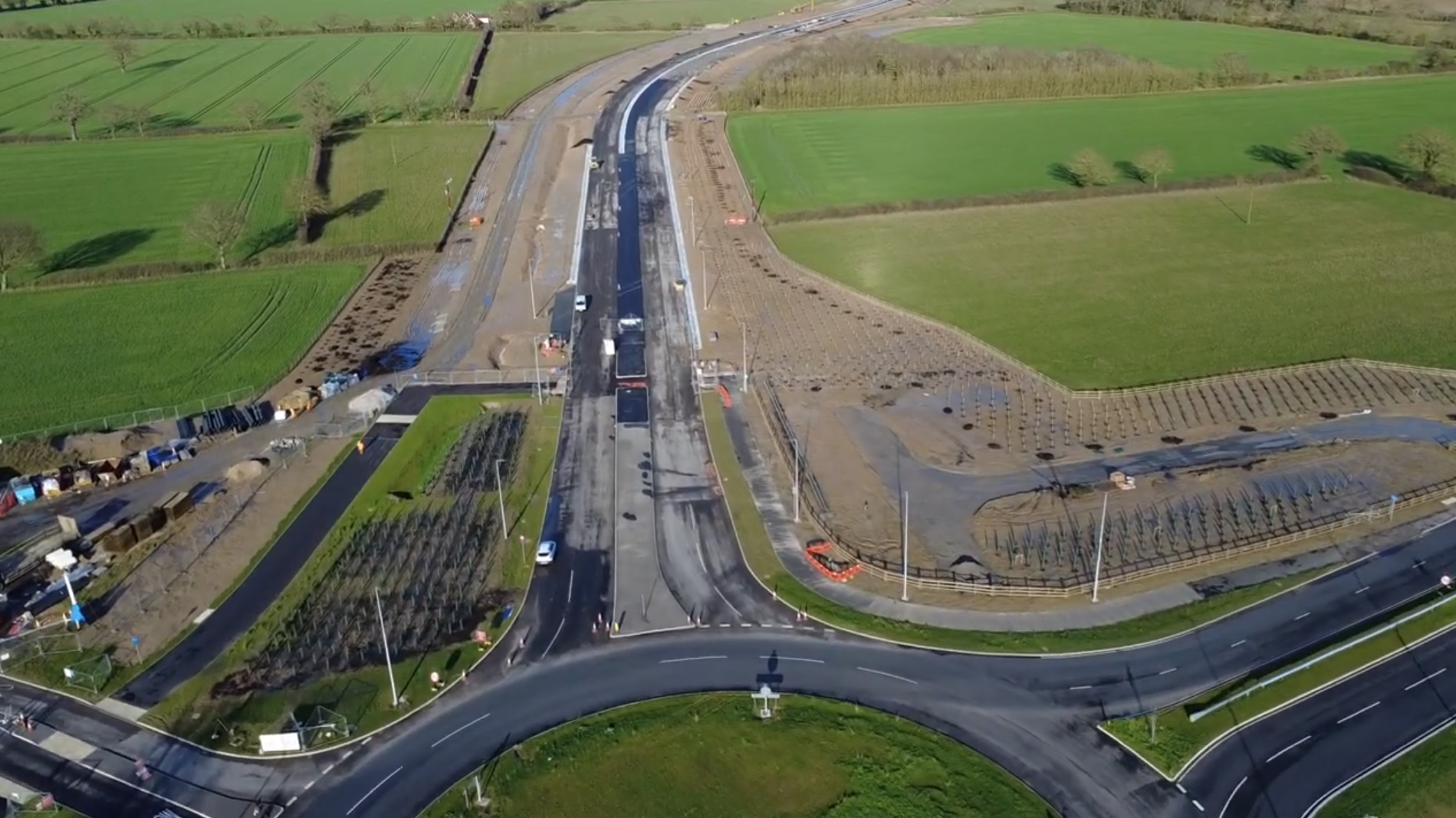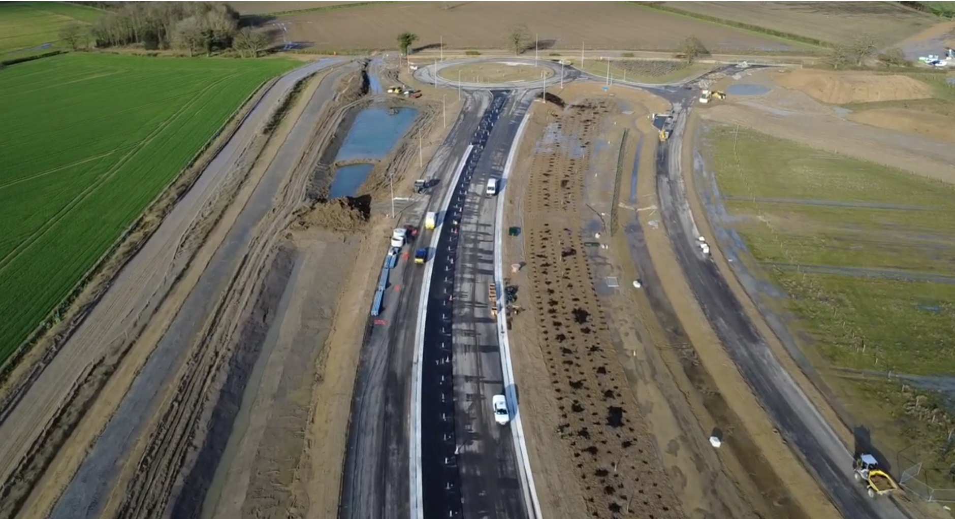 Significant progress has been made, with work taking place on the new roundabout sections which will ultimately form the accesses to the future garden community development. As can be seen in the recent drone footage, elements of the walking and cycling lane have progressed, and drainage ponds have been excavated.
