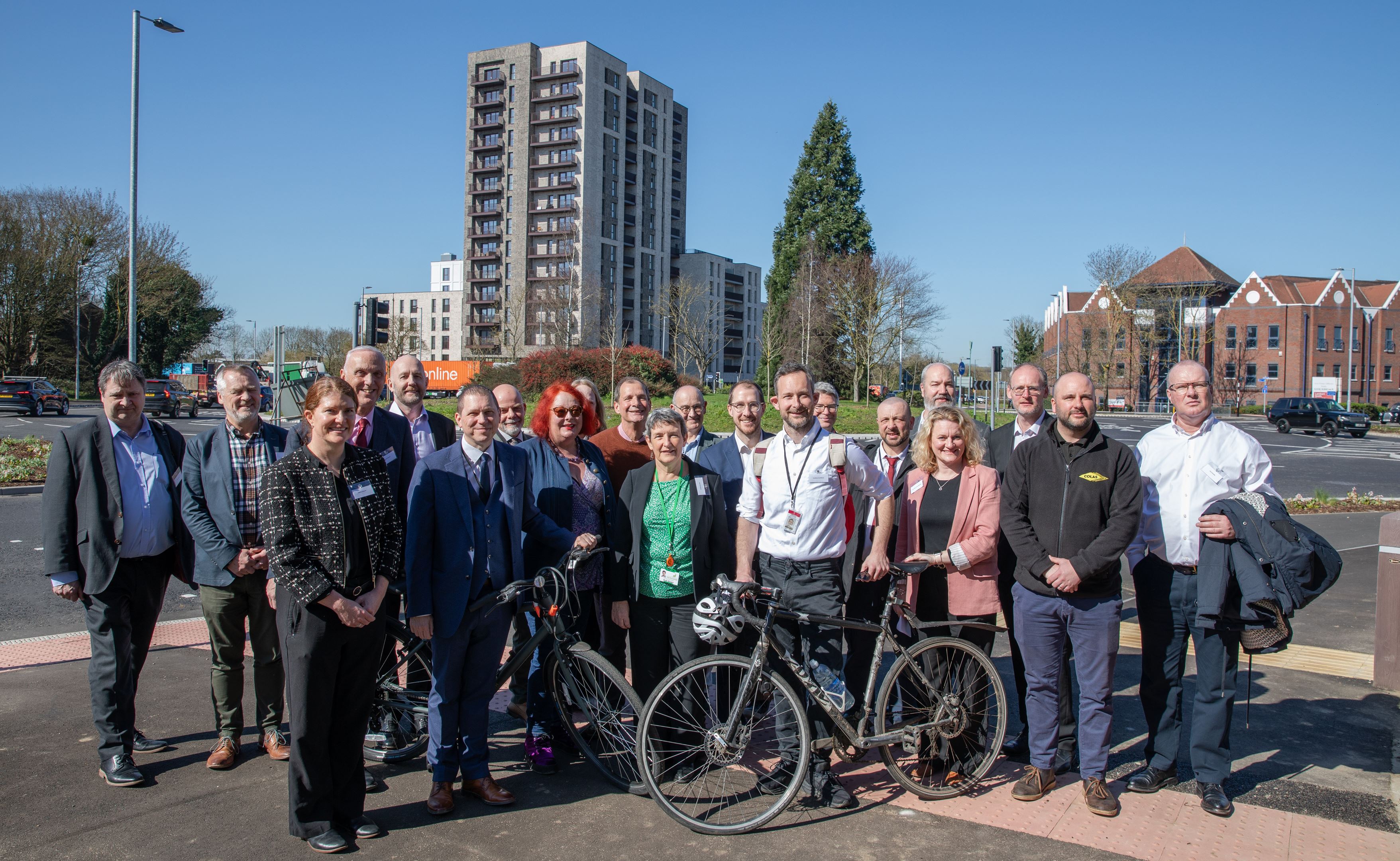 Representatives from East Herts District Council, Epping Forest District Council, Essex County Council, Harlow Council, Hertfordshire County Council mark the completion of the work