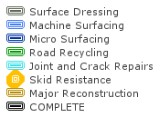 Different surface treatments are used according to all the circumstances of the road, such as the current condition, how busy the road is and the most efficient treatment for the future, how many years of good condition will result from the money spent on the treatment.