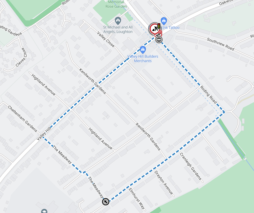 It will also be necessary for a road closure to be in place for the full duration on at the junction to Roding Road. An alternative route is available via Roding Road, Valley Hill, The Meadway, Southern Drive, Avondale Drive and vice versa.